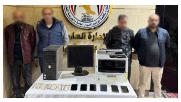 وعقب تقنين الإجراءات، أمكن ضبط عناصر التشكيل العصابي، وبحوزتهم (جهاز حاسب آلي – طابعة كمبيوتر – 6 هواتف محمولة مستخدمة في مزاولة نشاطهم الإجرامي – شرائح هواتف محمولة – مبلغ مالي من متحصلات نشاطهم الإجرامي)، وبفحص الأجهزة المضبوطة تبين احتواؤها على أدلة تؤكد نشاطهم الإجرامي.