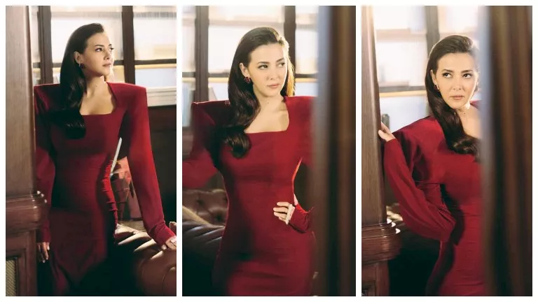 ونشرت دنيا صور عبر حسابها الرسمي بموقع “انستجرام”، مرتدية فستان طويل باللون الأحمر الداكن، مع أكتاف بارزة، مما منحها إطلالة مثالية.
