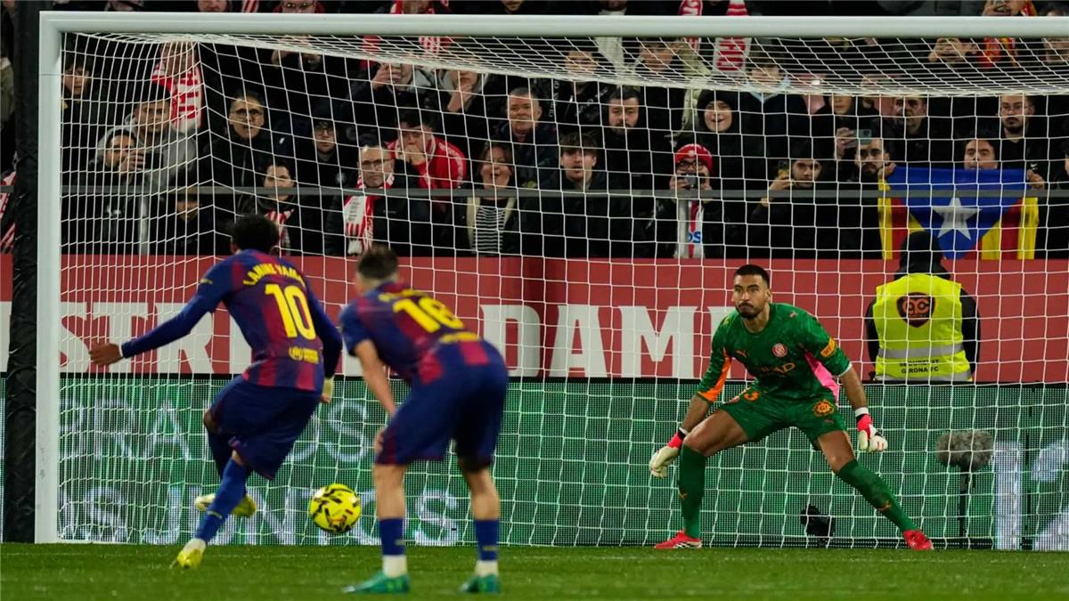 لكن قبل التسديدة، دخل عدة لاعبين منطقة الجزاء قبل أن ينفذ لامين يامال الركلة، وكان من بينهم فرينكي دي يونج لاعب برشلونة وبرايان جيل لاعب جيرونا، اللذان تنافسا على الكرة بعدما ارتدت عقب اصطدامها بالقائم.