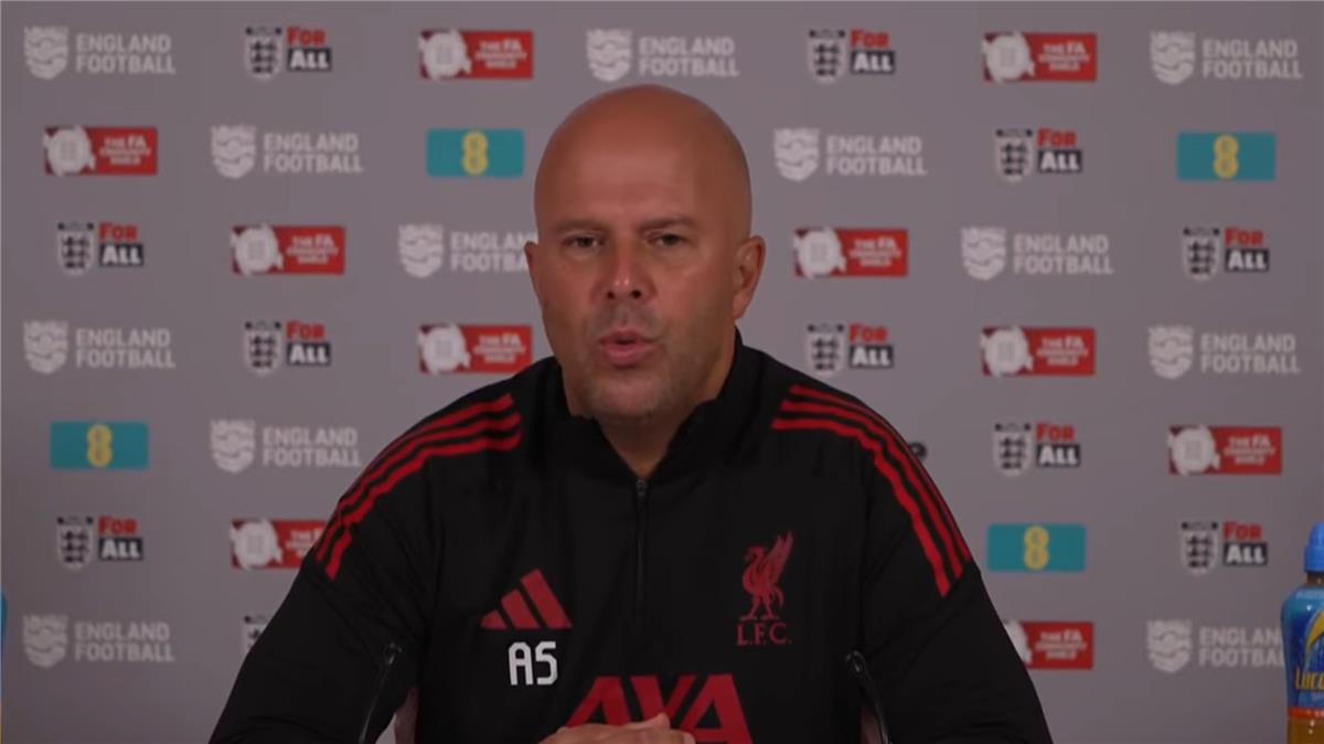 خرج آرني سلوت، مدرب ليفربول في مؤتمر صحفي للحديث عن استعدادات فريقه لمواجهة كريستال بالاس الأحد المقبل، في لقاء الدرع الخيرية.