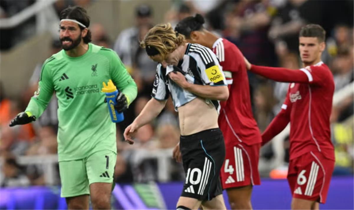 وقبل نهاية شوط المباراة الأول، تدخل جوردون بقوة من الخلف على فان دايك، وبالعودة لتقنية الفار قرر حكم اللقاء إشهار بطاقة حمراء مباشرة للاعب نيوكاسل، وألغى قراره بمنح بطاقة صفراء.