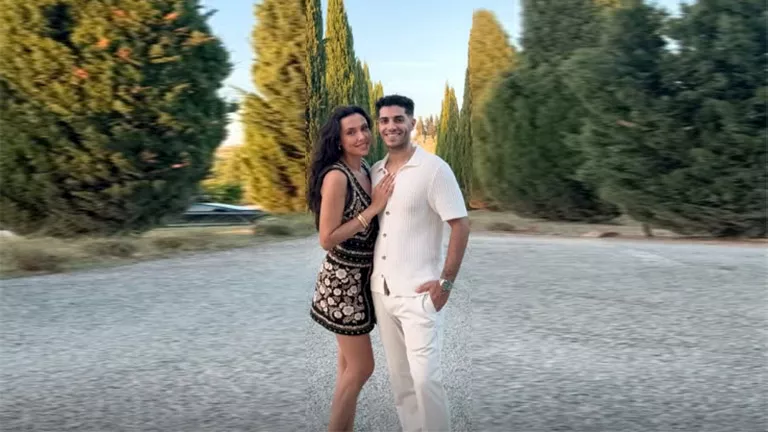 ونشرت إميلي شاه مقطع فيديو عبر خاصية الاستوري على حسابها “انستجرام”، وظهرت خلاله مع مينا مسعود على متن إحدى الطائرات وارتدي مينا تي شيرت كتب عليه: “العريس”.