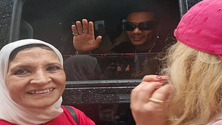 والتقط رمضان صورًا مع محبيه من الجالية المصرية أثناء تجواله في أحد شوارع نيويورك.