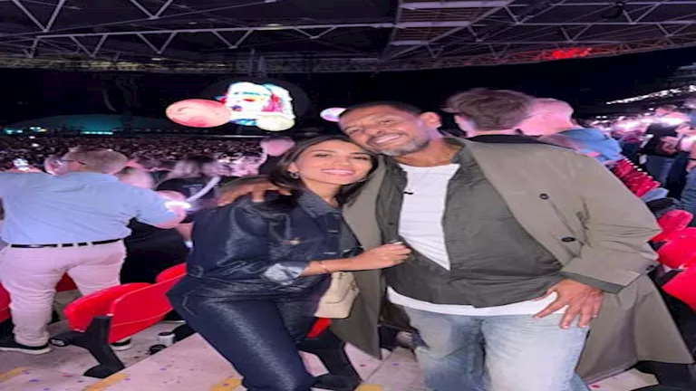 بالصور.. هاني فرحات مع زوجته في حفل "Coldplay" بلندن
