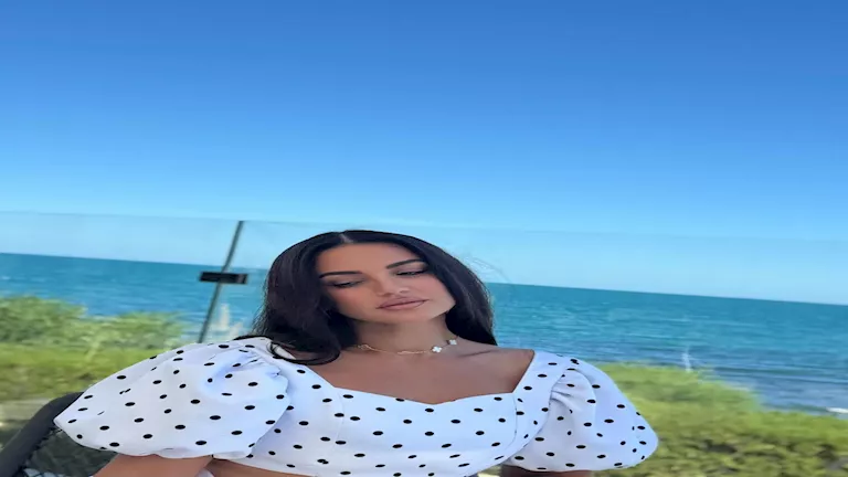 ظهرت بإطلالة أنيقة ولافتة للأنظار، فقد اختارت فستانًا باللون اللبني الناعم يعكس الرقي والبساطة، ونسقته مع بليزر مرصع بالترتر اللامع.