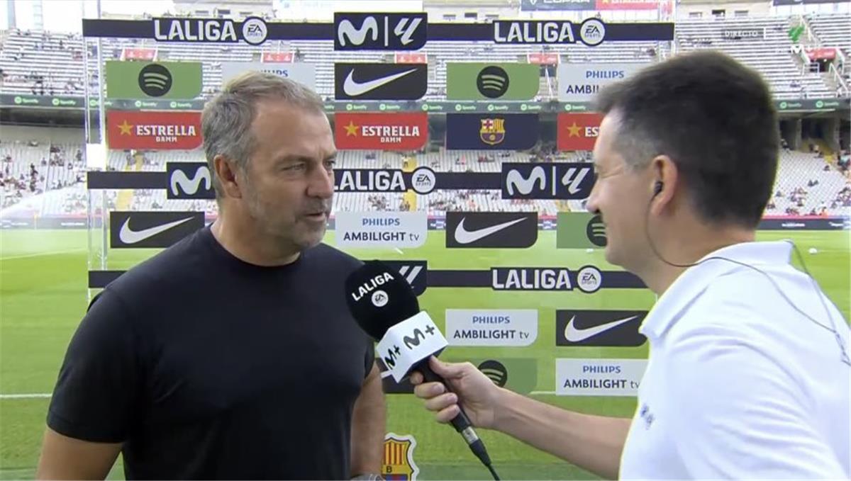 تحدث هانز فليك مدرب برشلونة قبل دقائق من انطلاق مباراة فريقه أمام ريال سوسيداد على ملعب مونتجويك في الدوري الإسباني لكرة القدم.