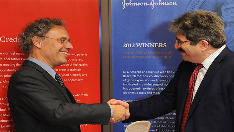 أجرى أمبروس، أستاذ العلوم الطبيعية في كلية الطب بجامعة ماساتشوستس، البحث الذي أكسبه الجائزة في جامعة هارفارد. أجرى روفكون بحثه في مستشفى ماساتشوستس العام، وهو أستاذ علم الوراثة في كلية الطب بجامعة هارفارد.