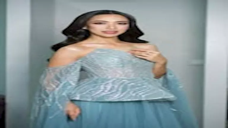 ظهرت سوريا خورن ملكة جمال كمبوديا 2026 بفستان طويل باللون البيبي بلو بقصة “الكب” مزينا بتطريزات من الأعلى، وتركت شعرها الويفي منسدلا على كتفيها.